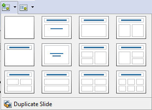 A similar toolbar element is used to assign a layout to the currently selected slide, or reset the layout to the assigned layout after making changes.